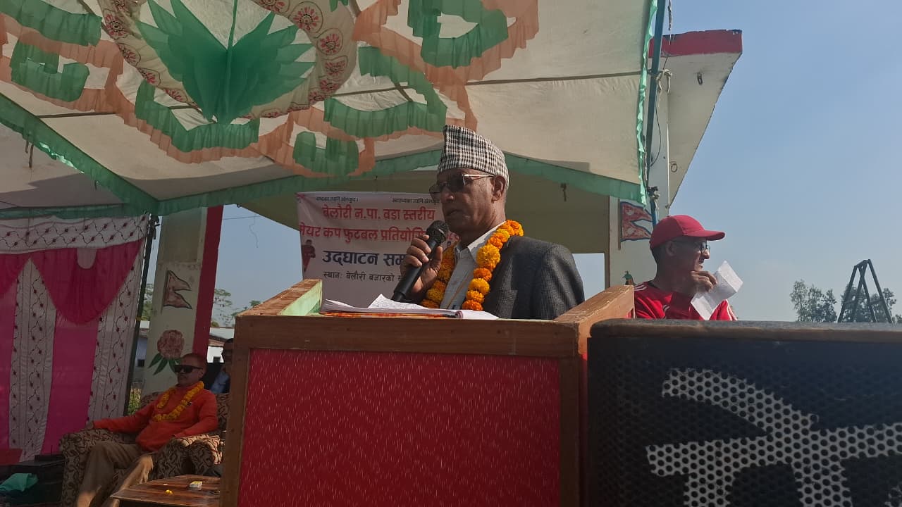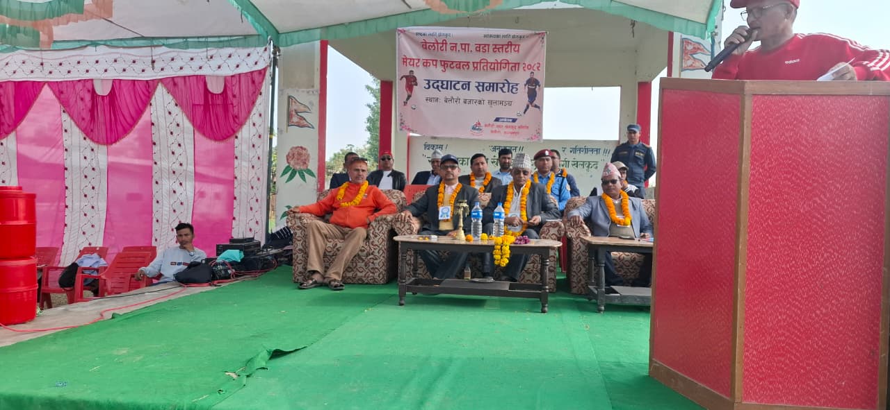 बेलौरी, कञ्चनपुर । कञ्चनपुरको दक्षिणी क्षेत्रको प्रमुख व्यापारिक केन्द्र बेलौरी नगरपालिकामा वडास्तरीय मेयर कप फुटबल प्रतियोगिताको आज एक समारोहका बिच उद्घाटन गरिएको छ । बेलौरीको ऐतिहासिक खुलामञ्चमा आयोजित कार्यक्रममा खेलकुदको उत्साहसँगै नगरको पूर्वाधार विकास र जग्गा विवादका विषयमा गम्भीर बहस समेत भएको छ । सुदूरपश्चिम प्रदेश सभा सदस्य दिवान सिंह विष्टको प्रमुख आतिथ्यमा भएको उद्घाटन कार्यक्रम लगत्तै सम्पन्न मैत्रीपूर्ण फुटबल खेलमा बेलौरी नगरपालिकाको कर्मचारी टिमले बेलौरी उद्योग वाणिज्य संघको टिम लाई पराजित गर्दै उदघाटन कार्यक्रमलाई रोमान्चक बनाएको थियो ।