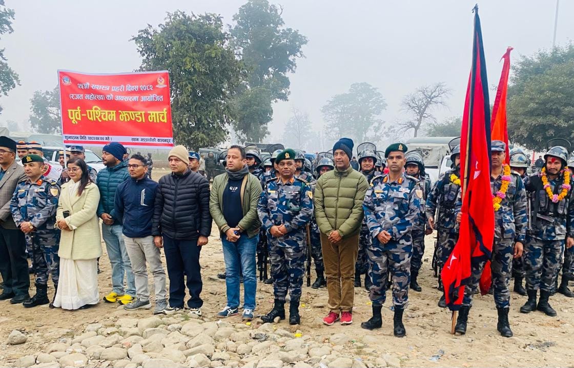 सशस्त्र प्रहरी बलको २५औँ स्थापना दिवसः कञ्चनपुरको गड्डाचौकी हुँदै झण्डा मार्चपास।।