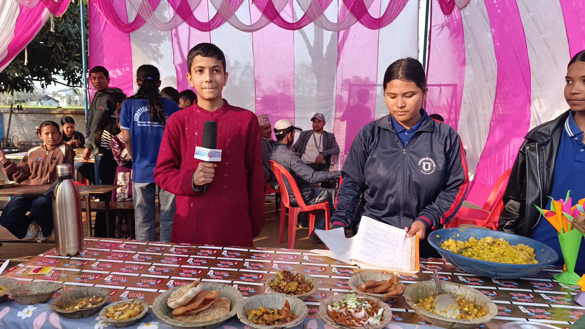 आज बेलौरीको शान्तिपुर स्थित ‛श्री उग्रतारा बाल विद्यालयमा वृहत् फुड फेस्टिभल २०८२’ सम्पन्न भएको छ । कक्षा ४ देखि १० सम्मका विद्यार्थीहरुको सहभागितामा विद्यालय अन्तर्गतका समुहहरु ‘रेड हाउस’, ‘ग्रिन हाउस’, ‘येल्लो हाउस’ र ‘ब्लु हाउस’ गरि कुल ४ ओटा समुहको स्टलमार्फत् सुदूरपश्चिमका स्थानीय परिकारहरुको प्रदर्शनका साथ सो फेस्टिभल आयोजना गरिएको हो ।